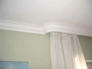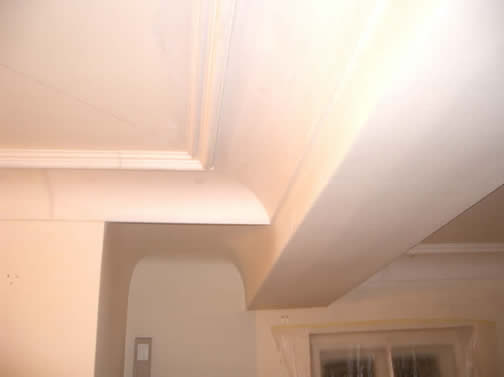 Betonsturz und beidseitiges umlaufendes Hohlkehlenstuckgesims